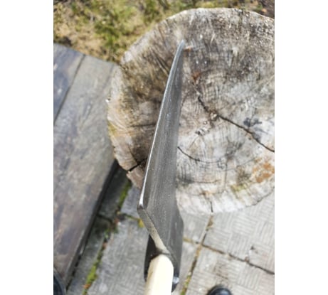 Потратив примерно два часа подготовил топор для работы. Клеймо завода стерлось при выведение плоскостей. Аналогов к сожелению данному топору нет изза его цены. Топор подготовлен для рубки свинины. На фото топор после переделки. У предыдущего такого топора рукоять лопнула изза неправильно забитого клина на заводе, сколько продержится эта рукоядь неизвестно. Если есть возможность доделать до ума к покупке рекомендую.
