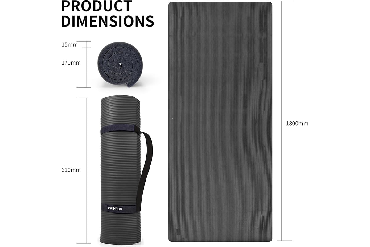 Коврик для йоги и фитнеса PROIRON 1800x610x15 мм, черный К18615Ч