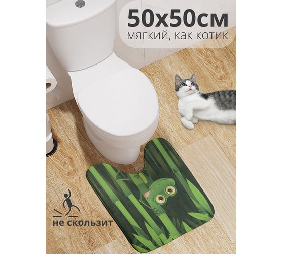 Коврик для туалета с вырезом противоскользящий JOYARTY Голодная лягушка на бамбуке 50x50 см wcbath_15255_50x50