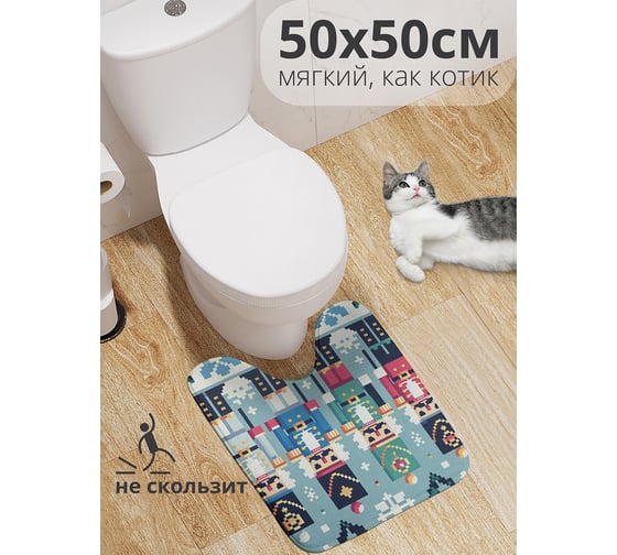 Коврик для туалета с вырезом противоскользящий JoyArty "Строй щелкунчиков" 50x50 см , серия Новый год и Рождество wcbath_sd3930_50x50