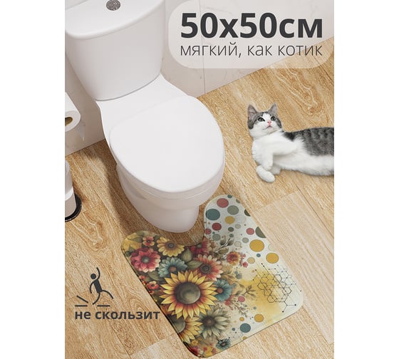 Коврик для туалета с вырезом противоскользящий JoyArty "Волшебные цветы" 50x50 см wcbath_sd3563_50x50
