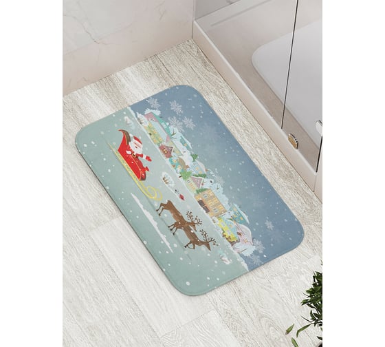 Коврик для ванной JOYARTY "дед мороз к нам мчится" противоскользящий, 52x77 см bath_419857 предназначен для ванных комнат, душевых, саун и бассейнов. Изделие не только украсит помещение, но и предотвратит угрозу падения на мокром кафеле.