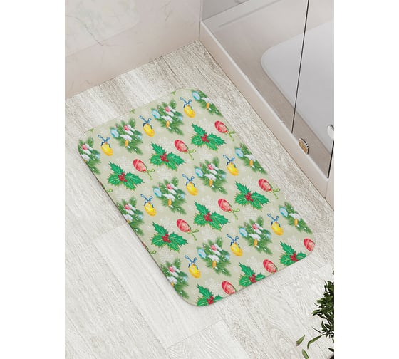 Коврик для ванной JOYARTY "елочные шары и рождественская звезда" противоскользящий, 52x77 см bath_419868