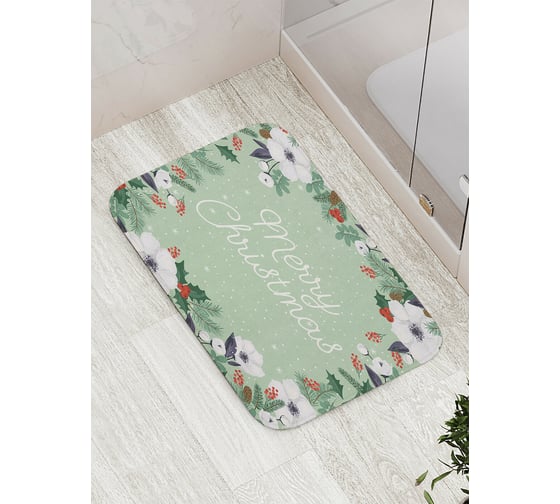 Коврик для ванной JOYARTY "новогодняя надпись в цветах" противоскользящий, 52x77 см bath_419830