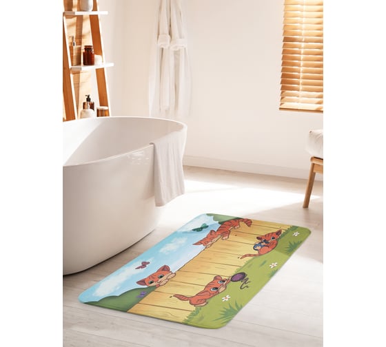 Коврик для ванной комнаты и туалета противоскользящий JOYARTY "Игривые котята" 60х100 см bath_385266_60x100