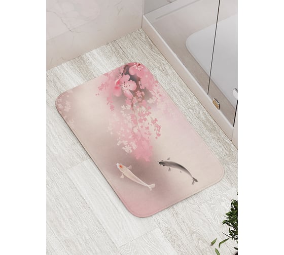 Коврик для ванной комнаты и туалета противоскользящий JOYARTY Карпы под сакурой 52x77 см bath_38766
