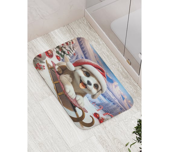 Коврик для ванной комнаты и туалета противоскользящий JoyArty "Катание на санях" 52x77 см, серия Новый год и Рождество bath_sd3868