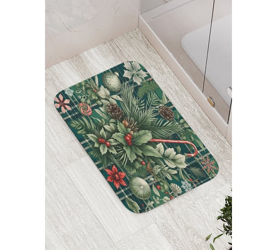 Коврик для ванной комнаты и туалета противоскользящий JoyArty "Клетчатая композиция" 52x77 см, серия Новый год и Рождество bath_sd3912
