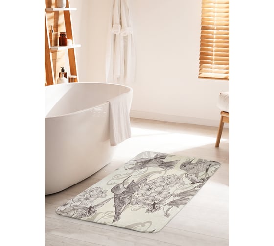 Коврик для ванной комнаты и туалета противоскользящий JOYARTY "Колибри и цветы" 60х100 см bath_12400_60x100