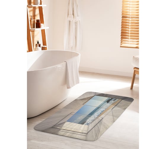 Коврик для ванной комнаты и туалета противоскользящий JOYARTY "Море за стеклом" 60х100 см bath_11838_60x100