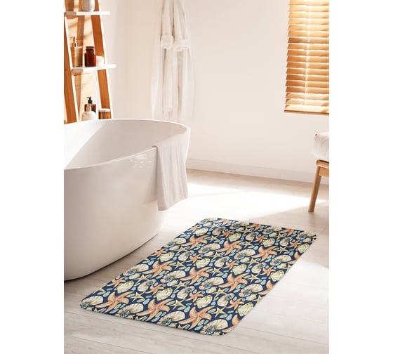 Коврик для ванной комнаты и туалета противоскользящий JOYARTY "Морские ракушки" 60х100 см bath_423820_60x100
