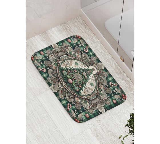 Коврик для ванной комнаты и туалета противоскользящий JoyArty "Нарядная елочка" 52x77 см, серия Новый год и Рождество bath_sd3910