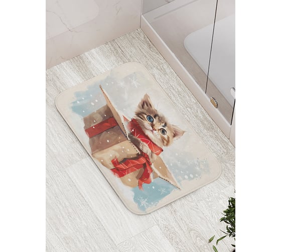 Коврик для ванной комнаты и туалета противоскользящий JoyArty "Неожиданный подарок" 52x77 см, серия Новый год и Рождество bath_sd3977