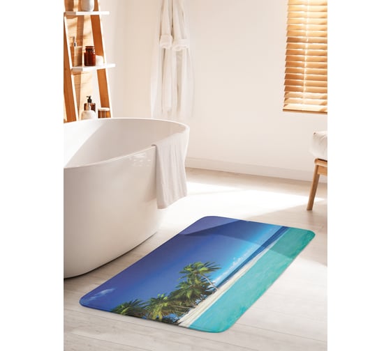 Коврик для ванной комнаты и туалета противоскользящий JOYARTY "Пальмовая роща у берега" 60х100 см bath_10053_60x100