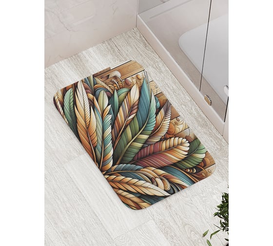 Коврик для ванной комнаты и туалета противоскользящий JoyArty "Перья птиц" 52x77 см bath_sd3458