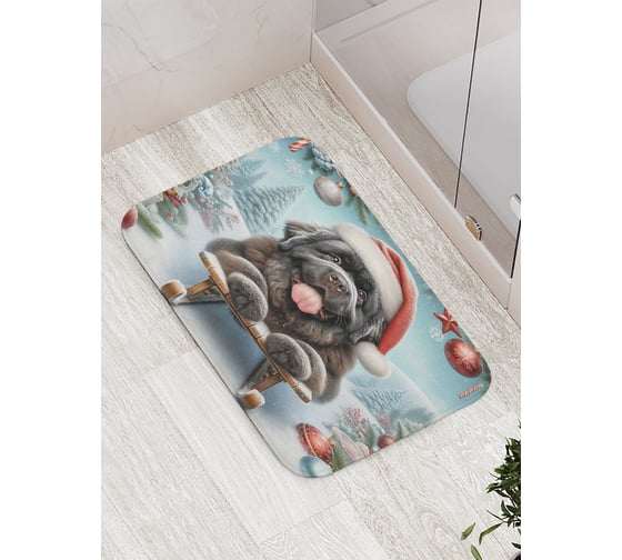 Коврик для ванной комнаты и туалета противоскользящий JoyArty "Пес на санках" 52x77 см, серия Новый год и Рождество bath_sd3867