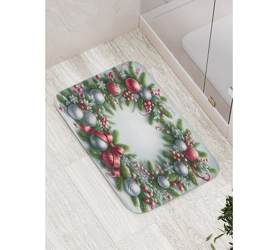 Коврик для ванной комнаты и туалета противоскользящий JoyArty "Праздничный венок" 52x77 см, серия Новый год и Рождество bath_sd3950