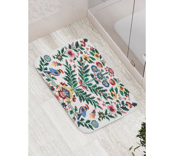 Коврик для ванной комнаты и туалета противоскользящий JoyArty "Птички на ветках" 52x77 см, серия Новый год и Рождество bath_sd3978