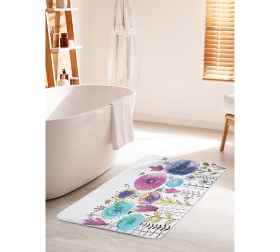 Коврик для ванной комнаты и туалета противоскользящий JOYARTY "Радужные одуванчики" 60х100 см bath_18364_60x100