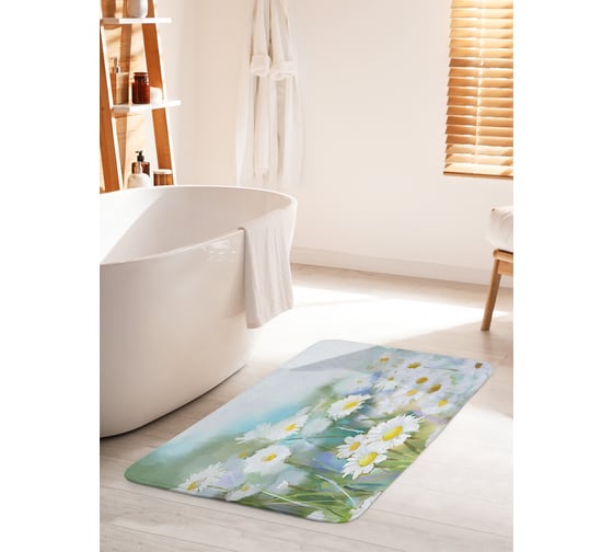 Коврик для ванной комнаты и туалета противоскользящий JOYARTY "Ромашковый рай" 60х100 см bath_21157_60x100