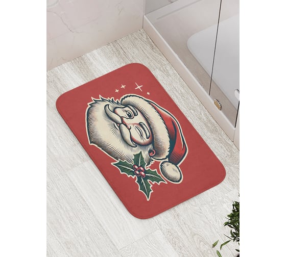 Коврик для ванной комнаты и туалета противоскользящий JoyArty "Счастливый Дед Мороз" 52x77 см, серия Новый год и Рождество bath_sd3955