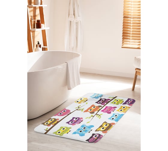Коврик для ванной комнаты и туалета противоскользящий JOYARTY "Сонные совы" 60х100 см bath_10818_60x100