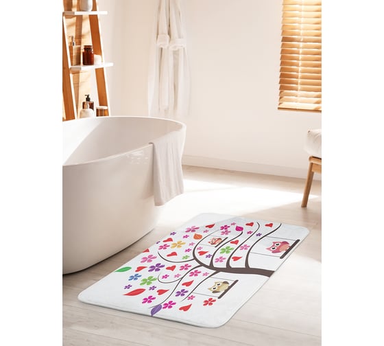 Коврик для ванной комнаты и туалета противоскользящий JOYARTY "Совы на дереве любви" 60х100 см bath_10813_60x100
