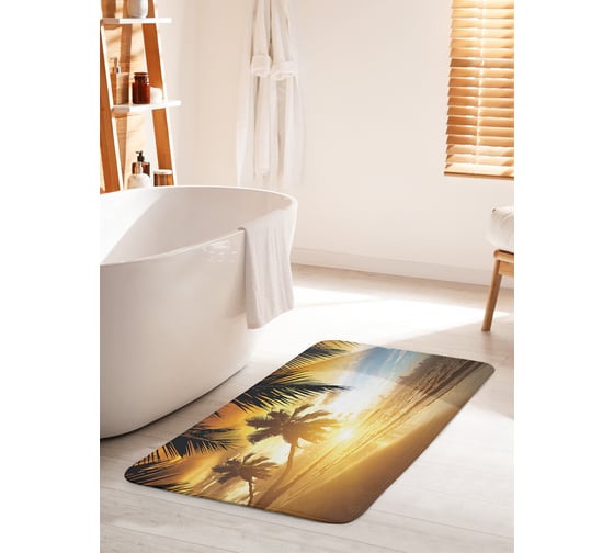 Коврик для ванной комнаты и туалета противоскользящий JOYARTY "Вечерние пальмы над берегом" 60х100 см bath_31265_60x100