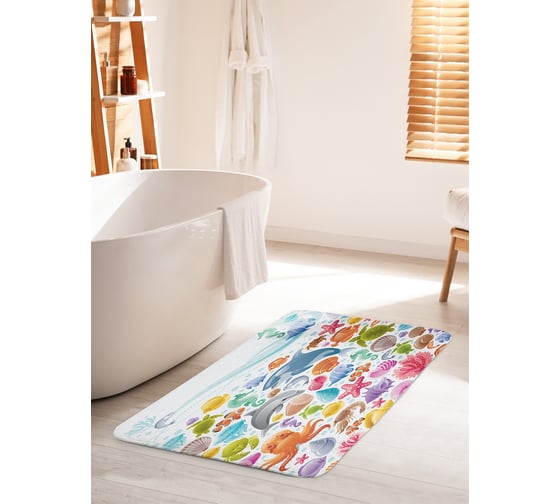 Коврик для ванной комнаты и туалета противоскользящий JOYARTY "Яркий морской мир" 60х100 см bath_18163_60x100