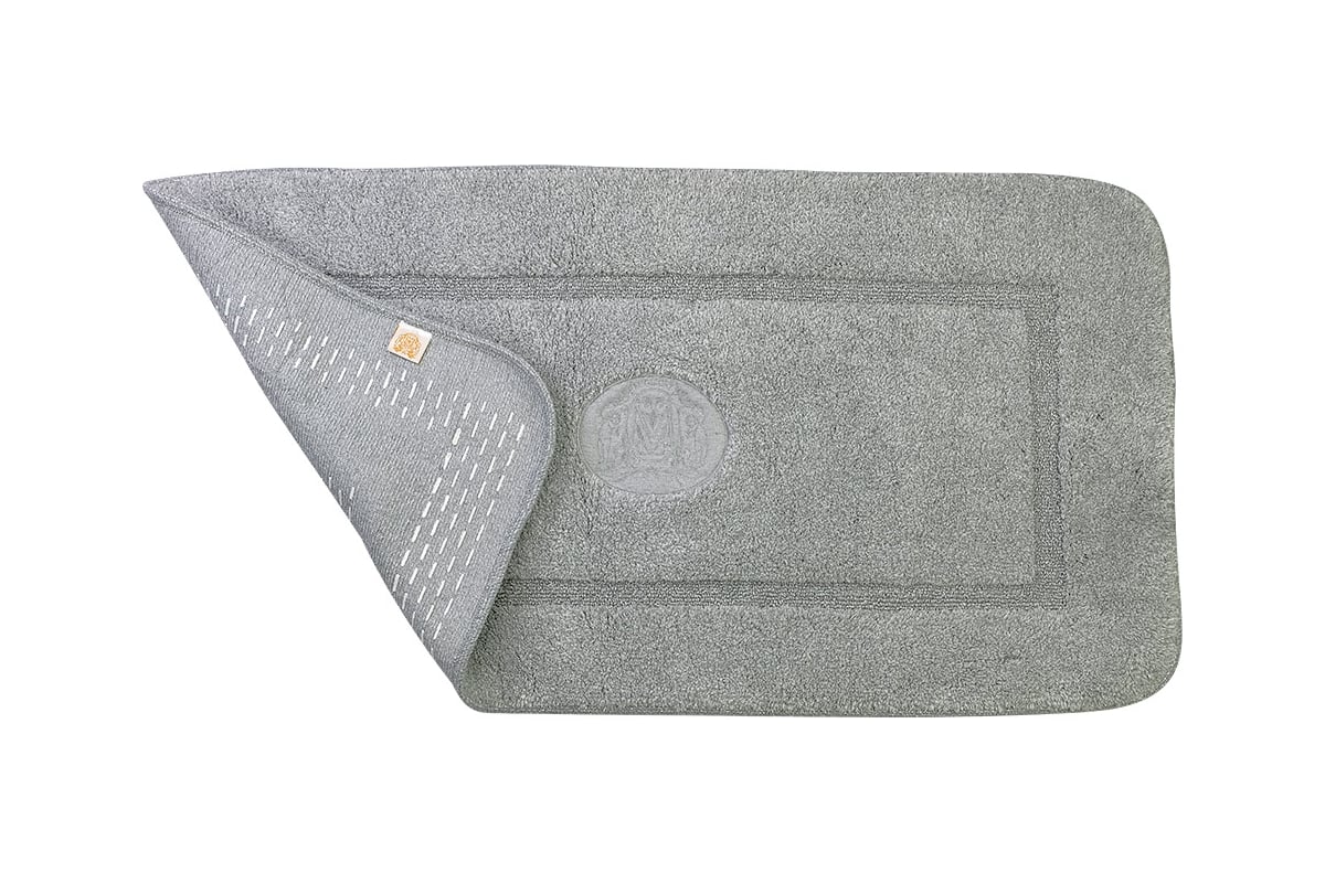 Коврик для ванной комнаты Migliore 60x120 см., вышивка логотип, серый, окантовка серебро 31913