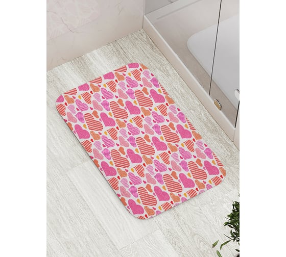 Коврик для ванной JOYARTY "Много сердец" противоскользящий, 52x77 см bath_422660