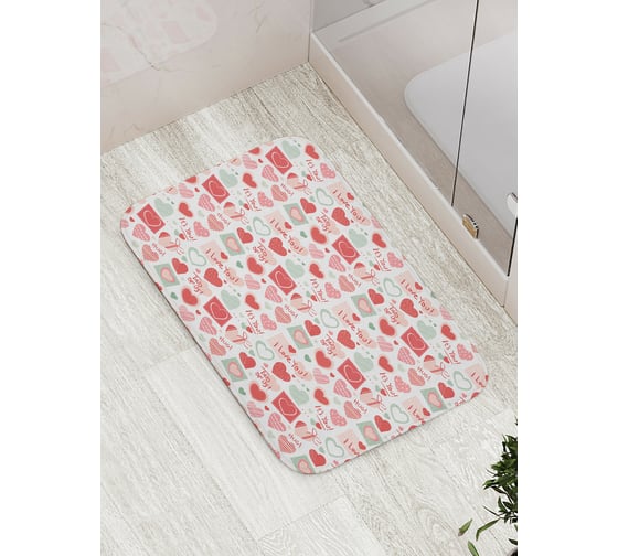 Коврик для ванной JOYARTY "Я люблю тебя" противоскользящий, 52x77 см bath_422631 предназначен для ванных комнат, душевых, саун и бассейнов.