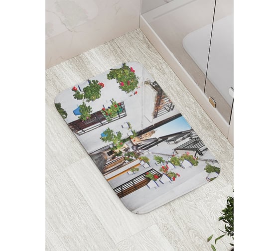 Коврик противоскользящий JoyArty "Белые улочки Андалусии" для ванной, сауны, бассейна, bath_2748