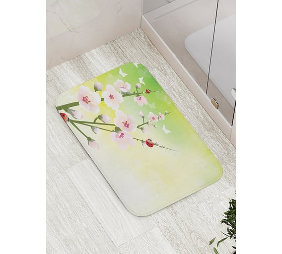 Коврик противоскользящий JoyArty "Божьи коровки на цветах" для ванной, сауны, бассейна, bath_16746