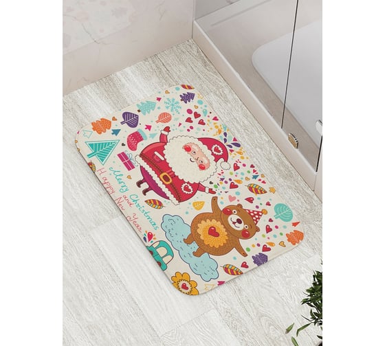 Коврик противоскользящий JoyArty "Дед Мороз с медведем" для ванной, сауны, бассейна, bath_78660