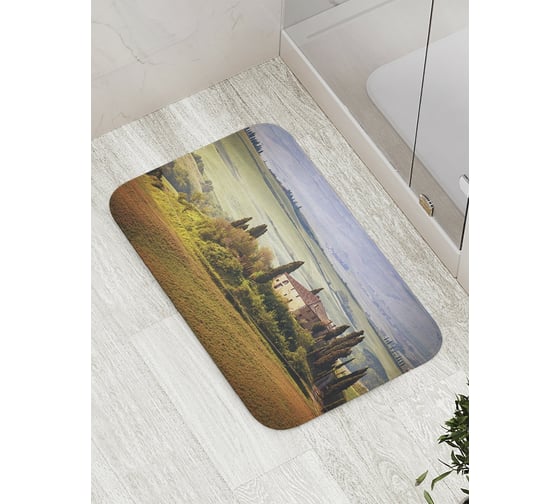 Коврик противоскользящий JoyArty "Дом на холмистом поле" для ванной, сауны, бассейна, bath_9220