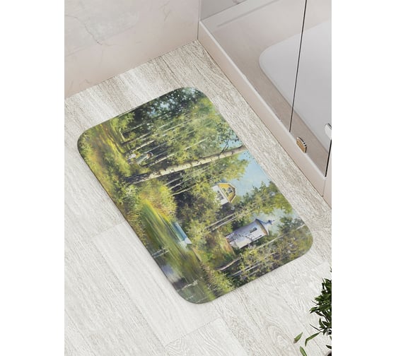 Коврик противоскользящий JoyArty "Дом, спрятанный в лесу" для ванной, сауны, бассейна, bath_17587