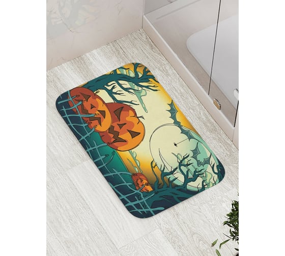 Коврик противоскользящий JoyArty "Джеки-фонари за забором" для ванной, сауны, бассейна, bath_6032