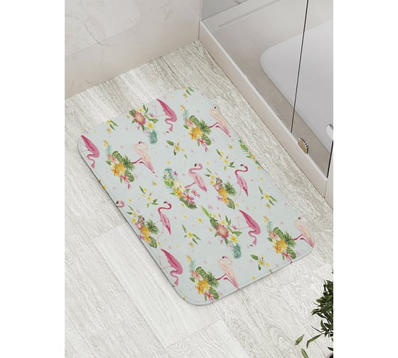 Коврик противоскользящий JoyArty "Фламинго в цветах" для ванной, сауны, бассейна, bath_9442