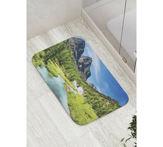 Коврик противоскользящий JoyArty "Горная река в лесу" для ванной, сауны, бассейна, bath_10002