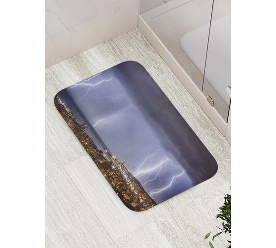 Коврик противоскользящий JoyArty "Город под молниями" для ванной, сауны, бассейна, bath_16314