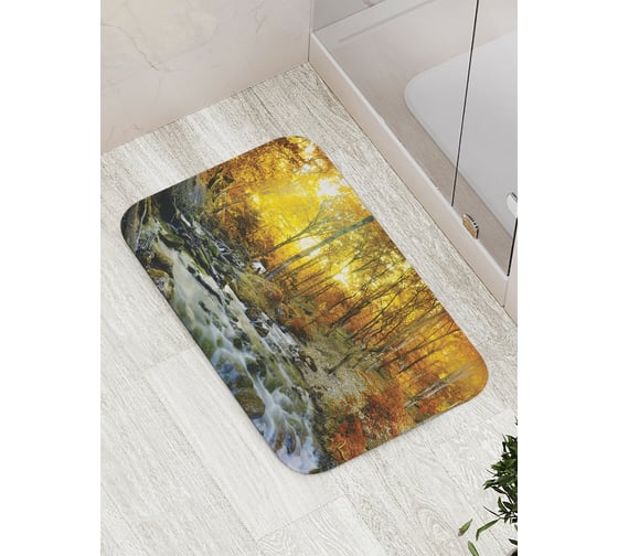 Коврик противоскользящий JoyArty "Каменистая лесная река" для ванной, сауны, бассейна, bath_16174
