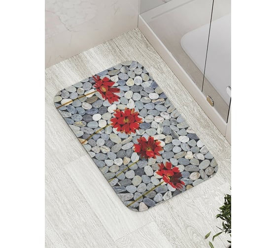 Коврик противоскользящий JoyArty "Камни в цветах" для ванной, сауны, бассейна, bath_8531