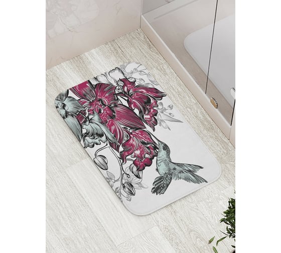 Коврик противоскользящий JoyArty "Колибри нашла рай" для ванной, сауны, бассейна, bath_17106