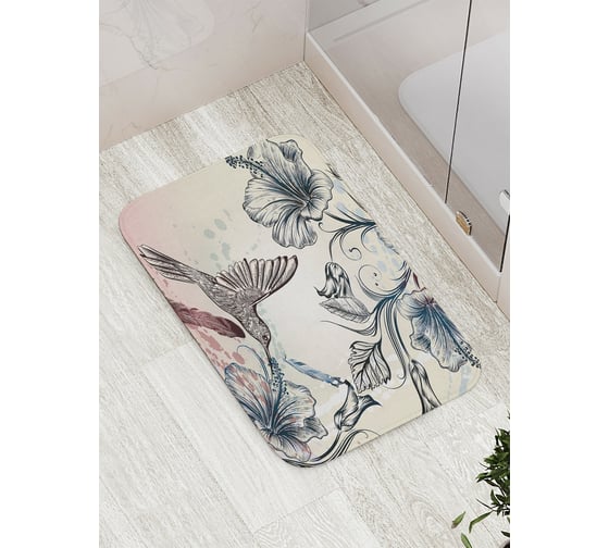 Коврик противоскользящий JoyArty "Колибри в работе" для ванной, сауны, бассейна, bath_17112