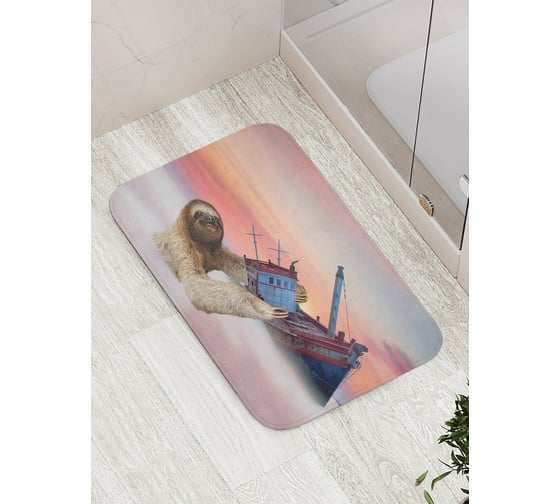 Коврик противоскользящий JoyArty "Ленивец и корабль" для ванной, сауны, бассейна, bath_5280
