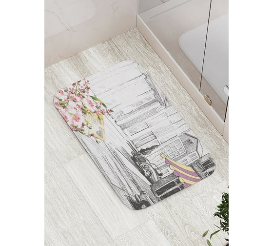 Коврик противоскользящий JoyArty "Нарисованный город и цветы" для ванной, сауны, бассейна, bath_5005