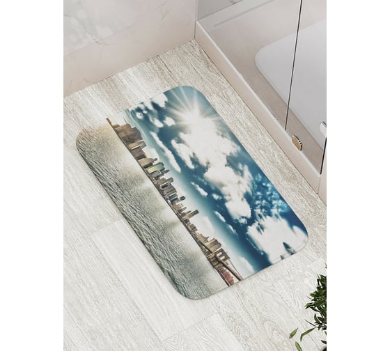 Коврик противоскользящий JoyArty "Небоскребы на острове" для ванной, сауны, бассейна, bath_3482