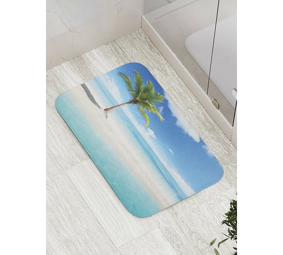 Коврик противоскользящий JoyArty "Одинокая пальма на пляже" для ванной, сауны, бассейна, bath_10051