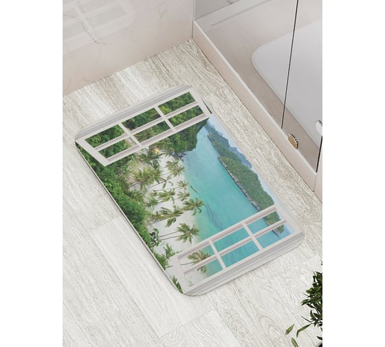 Коврик противоскользящий JoyArty "Окно к островам" для ванной, сауны, бассейна, bath_7779